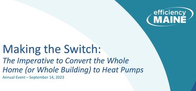 Sept 14, 2023 - Making the Switch: The Imperative to Convert the Whole Home (or Whole Building) to Heat Pumps. Panel at Efficiency Maine Trust Annual Event.